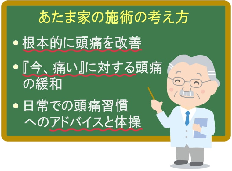 頭痛解消専門 あたま家の院長である私からあなたに3つのお約束を致します。